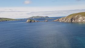 Toelichting: Blaskets view, uitzicht op de Blasket Eilanden, in de Atlantische Oceaan; de foto is gemaakt vanaf Schiereiland Dingle, graafschap Kerry, aan de zuidwestkust van Ierland.