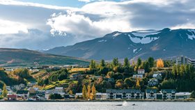 Akureyri is onze volgende bestemming. Een stad met zo'n 17500 inwoners en 40 kilometer van de poolcirkel. Akureyri betekent zoiets als 'landtong met akkers' en ligt in de punt van het 60 kilometer lange fjord Eyjafjördur. Bezienswaardig in Akureyri zijn de botanische tuinen, ooit IJslands eerste openbare park, het Laxdalshús, een oud huis in Deense stijl, het Sigurhædir, het huis van de schrijver van het IJslandse volkslied Matthías Jochumsson en de Akureyrarkirkja, een ietwat Sovjetfuturistisch ogende betonnen Evangelisch-Lutherse kerk. Vanuit Akureyri is het aan te raden om op excursie te gaan naar het Mývatn-meer of de pseudokraters van Skutustadir, die zijn gevormd door de onderwaterdampen geproduceerd door een uitbarsting van 2500 jaar geleden.