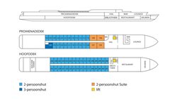 Het Hoofddek bereikt u per trap of personenlift vanaf het Promenadedek. Het Zonnedek is per trap of traplift te bereiken.