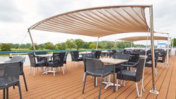 Bij binnenkomst op het Promenadedek waant u zich in de lobby van een stijlvol hotel. Iets verder naar voren vindt u de gezellige Captains Corner, gevolgd door de comfortabele lounge met dansvloer en gezellige bar, de ideale plek voor ontspanning en ontmoeting. Op het Hoofddek bevindt zich de bibliotheek en souvenirvitrines met 4 comfortabele fauteuils waar u zich heerlijk kunt terugtrekken. En in het royaal opgezette restaurant heeft u, dankzij de grote ramen, van een prachtig uitzicht op de omgeving. Onder de overkapping van het Zonnedek staan diverse fitnessapparaten klaar voor wie graag in beweging blijft. Verder naar achteren kunt u heerlijk ontspannen op een ligbed onder de open hemel, of plaatsnemen op één van de terrasstoelen.